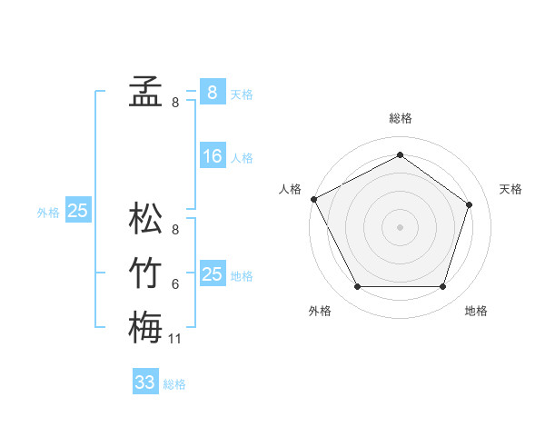 孟 松竹梅さんの地格は25画の4点!