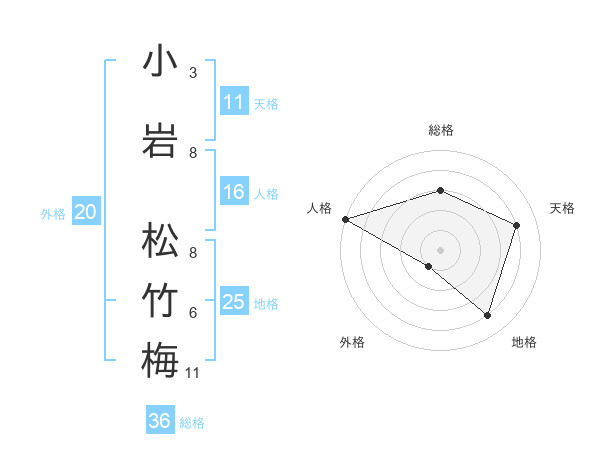 小岩 松竹梅さんを姓名の画数から五運を鑑定