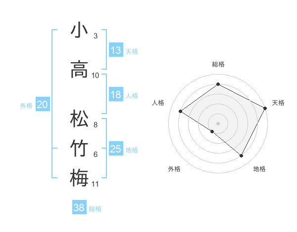 小高 松竹梅さんの総格は38画の4点!
