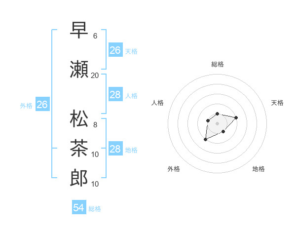 早瀬 松茶郎さんの総格は54画の1点!