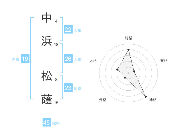 中浜 松蔭さんを姓名の画数から五運を鑑定