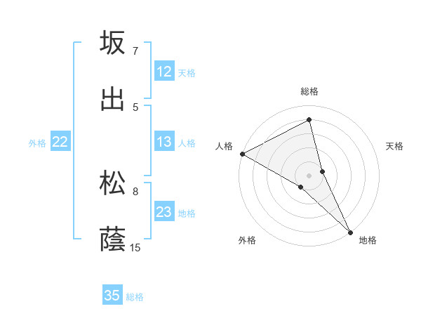 坂出 松蔭さんの地格は23画の5点!