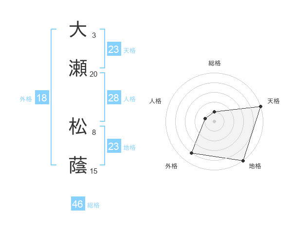 大瀬 松蔭さんの天格は23画の5点!