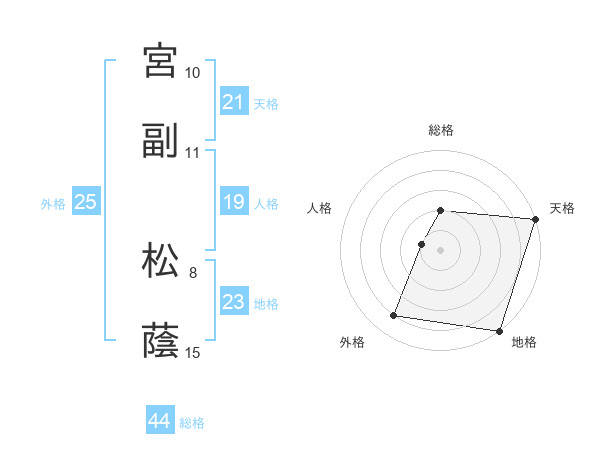 宮副 松蔭さんの総格は44画の2点!