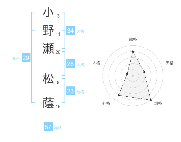 小野瀬 松蔭さんを姓名の画数から五運を鑑定
