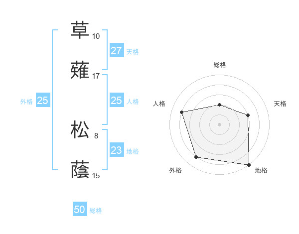 草薙 松蔭さんを姓名の画数から五運を鑑定