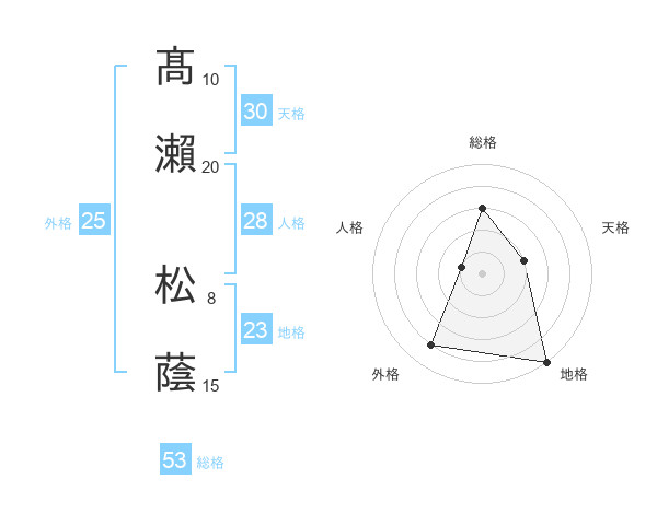 髙瀨 松蔭さんの総格は53画の3点!