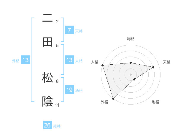 二田 松陰さんの外格は13画の5点!