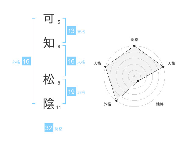 可知 松陰さんの外格は16画の5点!