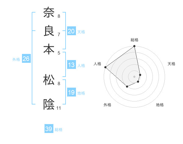 奈良本 松陰さんを姓名の画数から五運を鑑定