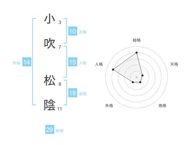 小吹 松陰さんを姓名の画数から五運を鑑定