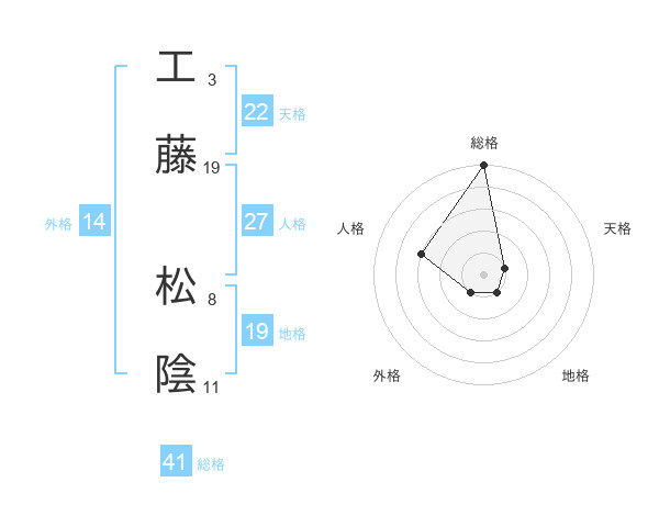 工藤 松陰さんの総格は41画の5点!