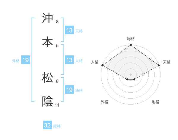 沖本 松陰さんを姓名の画数から五運を鑑定