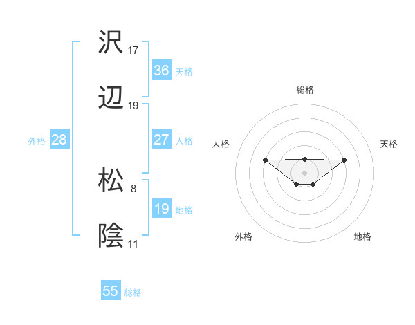 沢辺 松陰さんの総格は55画の1点!