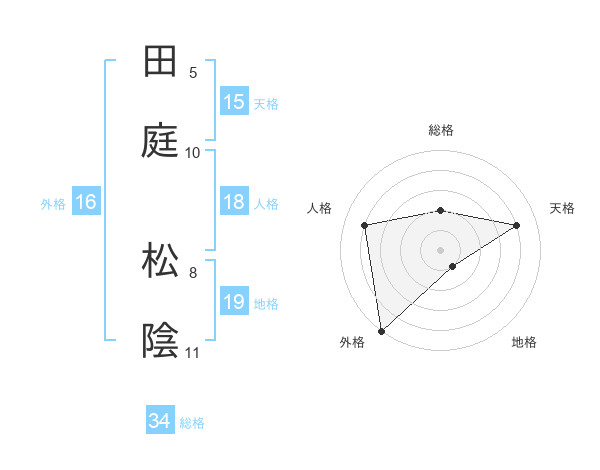 田庭 松陰さんの外格は16画の5点!