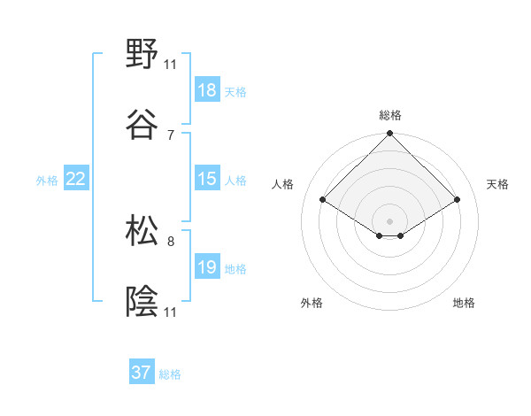 野谷 松陰さんの総格は37画の5点!