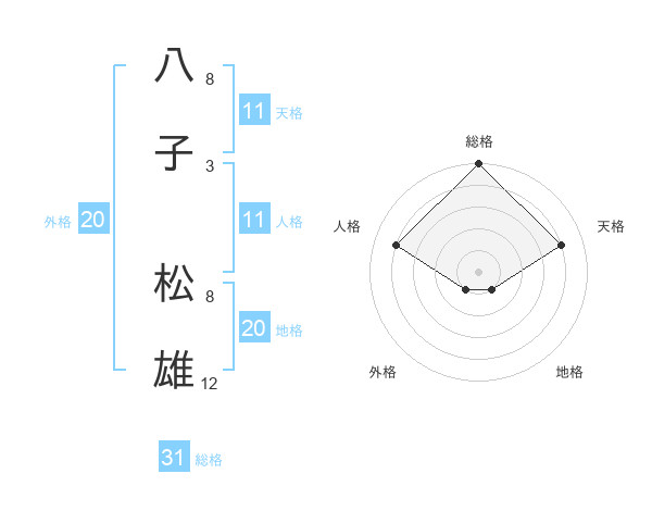 八子 松雄さんの総格は31画の5点!