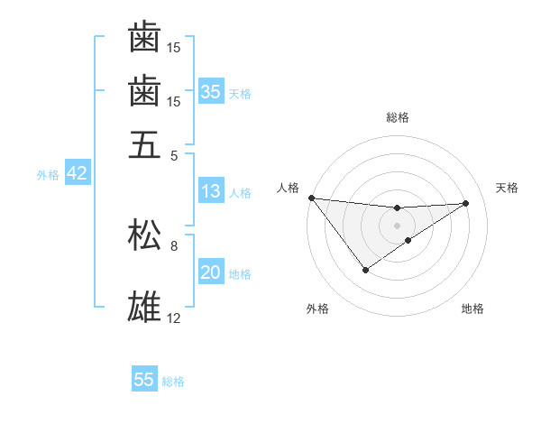 歯歯五 松雄さんの総格は55画の1点!