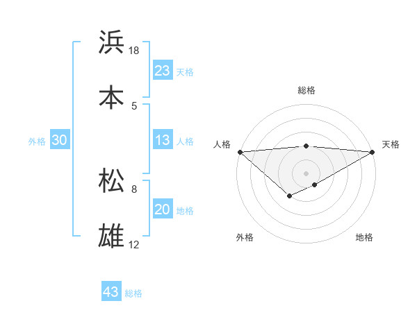 浜本 松雄さんの人格は13画の5点!