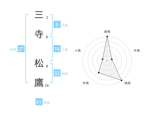 三寺 松鷹さんの総格は41画の5点!
