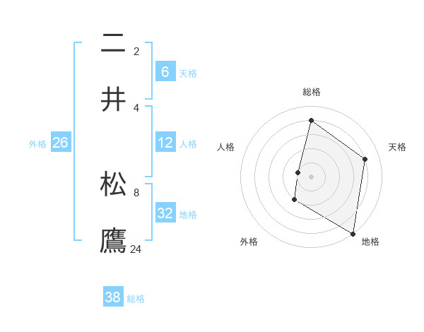 二井 松鷹さんを姓名の画数から五運を鑑定