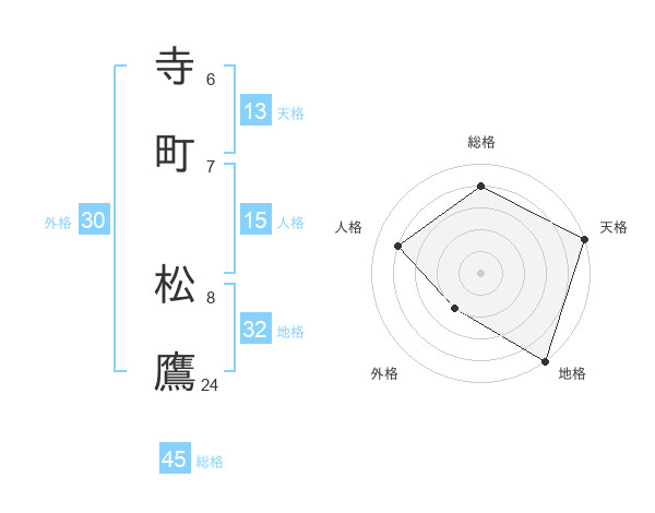 寺町 松鷹さんの総格は45画の4点!