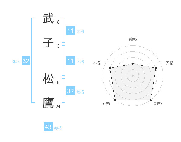 武子 松鷹さんの総格は43画の2点!