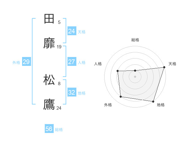 田靡 松鷹さんの天格は24画の5点!