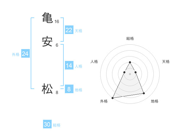 亀安 松さんの総格は30画の2点!