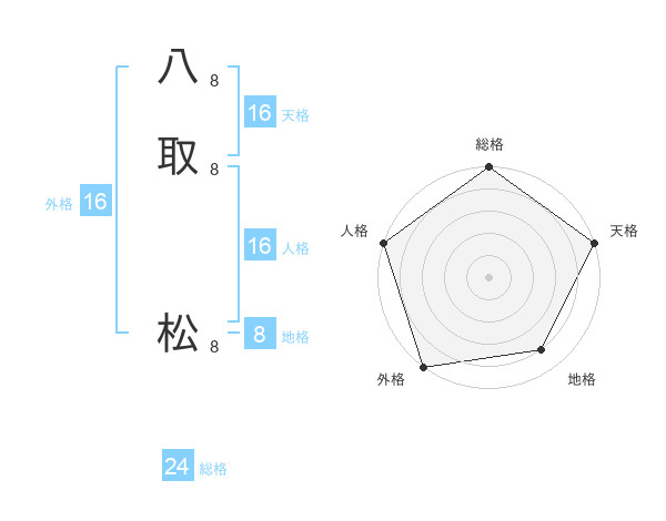 八取 松さんの外格は16画の5点!