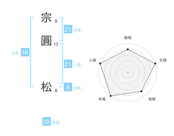 宗圓 松さんの人格は21画の5点!