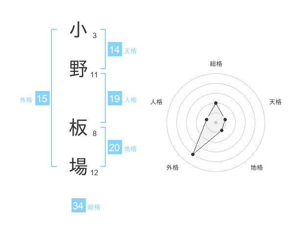 小野 板場さんの総格は34画の2点!