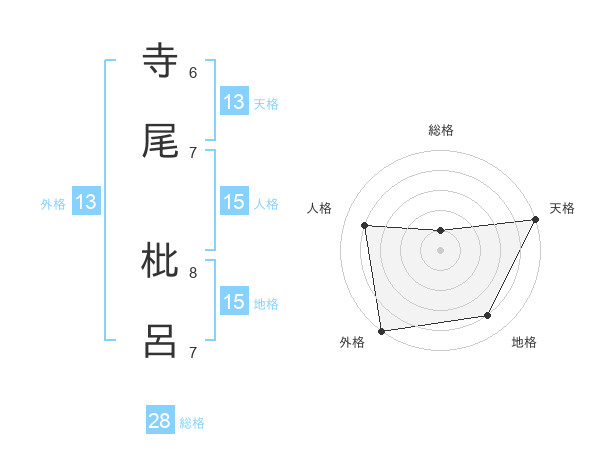 寺尾 枇呂さんを姓名の画数から五運を鑑定