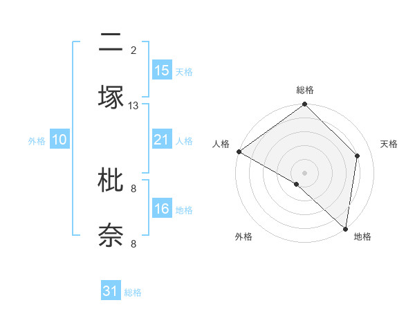二塚 枇奈さんの総格は31画の5点!