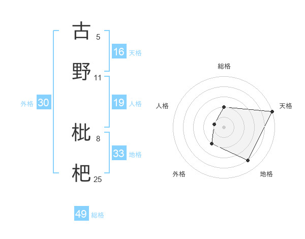 古野 枇杷さんを姓名の画数から五運を鑑定