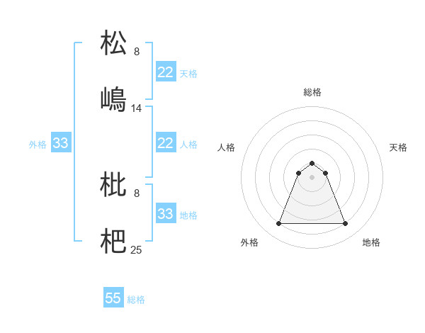 松嶋 枇杷さんを姓名の画数から五運を鑑定