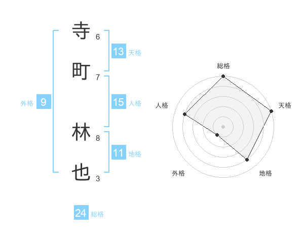 寺町 林也さんの総格は24画の5点!