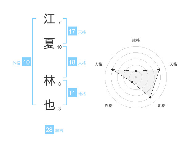 江夏 林也さんの天格は17画の4点!