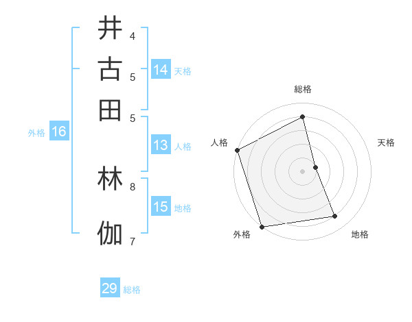 井古田 林伽さんの総格は29画の4点!