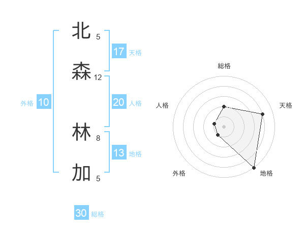 北森 林加さんの天格は17画の4点!