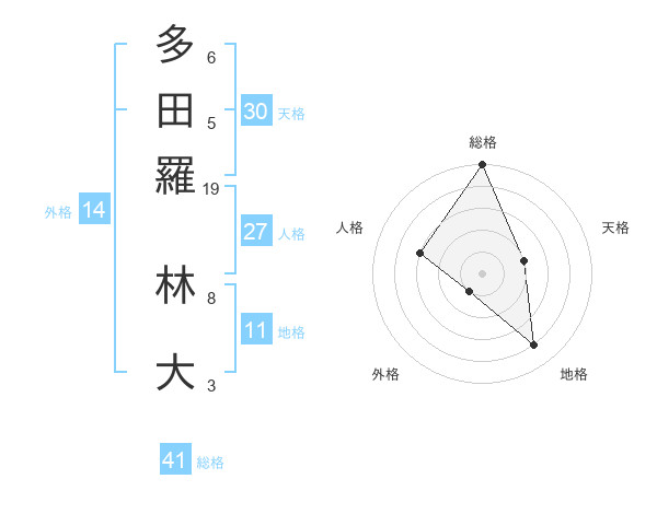 多田羅 林大さんを姓名の画数から五運を鑑定