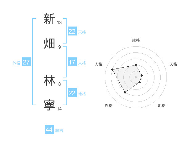 新畑 林寧さんを姓名の画数から五運を鑑定