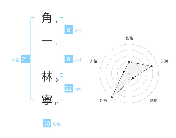 角一 林寧さんの総格は30画の2点