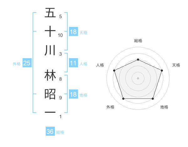 五十川 林昭一さんを姓名の画数から五運を鑑定
