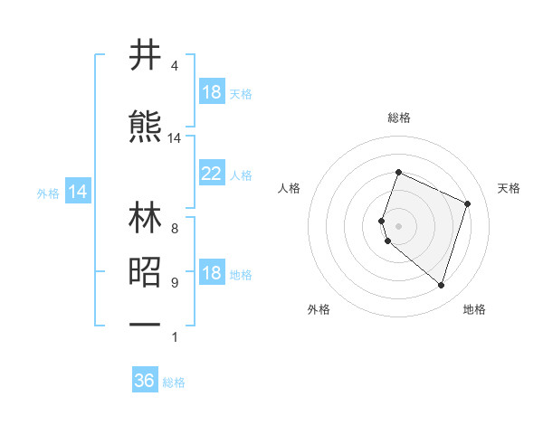 井熊 林昭一さんを姓名の画数から五運を鑑定
