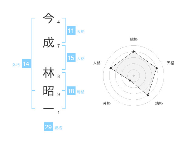今成 林昭一さんを姓名の画数から五運を鑑定