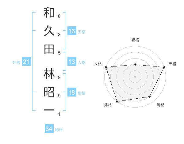 和久田 林昭一さんを姓名の画数から五運を鑑定