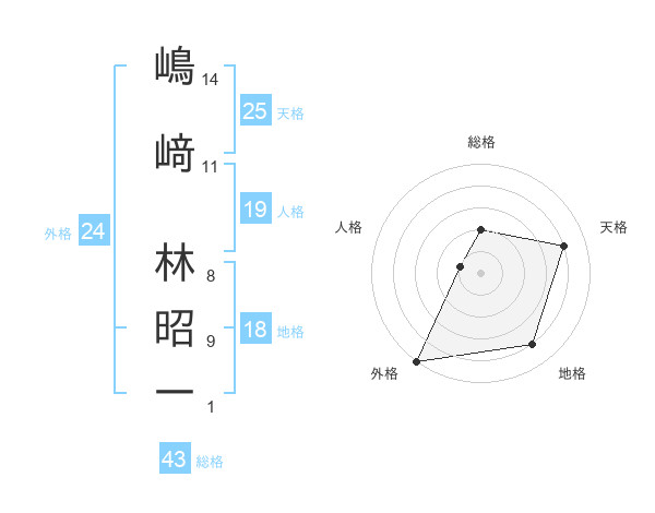 嶋﨑 林昭一さんを姓名の画数から五運を鑑定