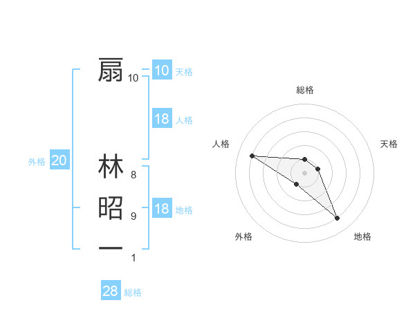 扇 林昭一さんを姓名の画数から五運を鑑定