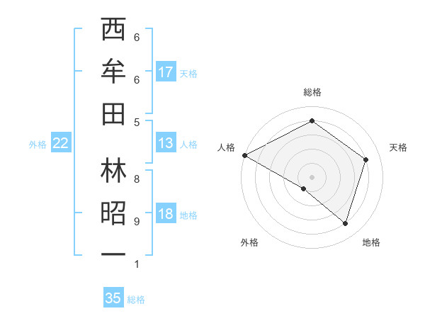 西牟田 林昭一さんの人格は13画の5点!